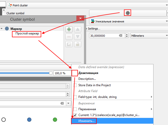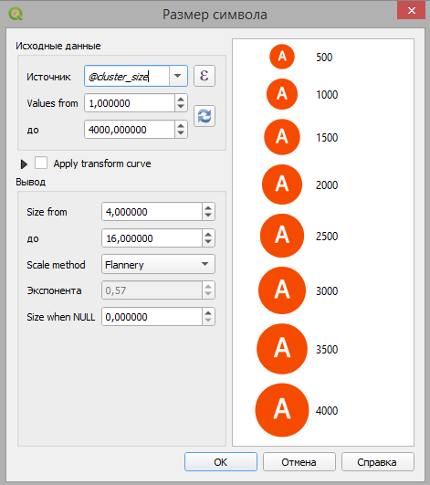 При таком способе создания в настроечном слое сразу сохраняется необходимый источник данных и формула размера кластера.