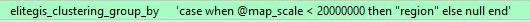 Для группировки по масштабу существует возможность задать диапазон масштабов, в котором применяется группировка.