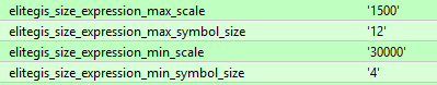 Параметр elitegis_size_expression позволяет задать собственное выражение для определения размера символа.