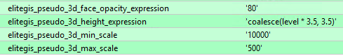Таблица 16 - Переменные для отображения объектов слоя в виде псевдо 3D-объектов
