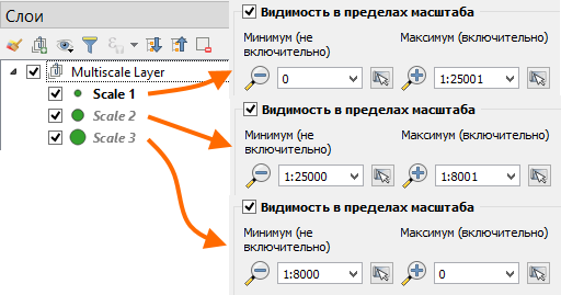 ) предназначен для визуализации представлений объектов во множестве масштабов. Т. е. с помощью мультимасштабного слоя настраивается переменная детализация объектов в зависимости от масштаба карты.