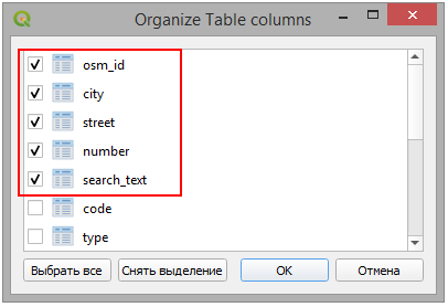 Таким образом в таблице будет настроен порядок полей. Эти действия необходимо повторить для всех остальных слоёв.