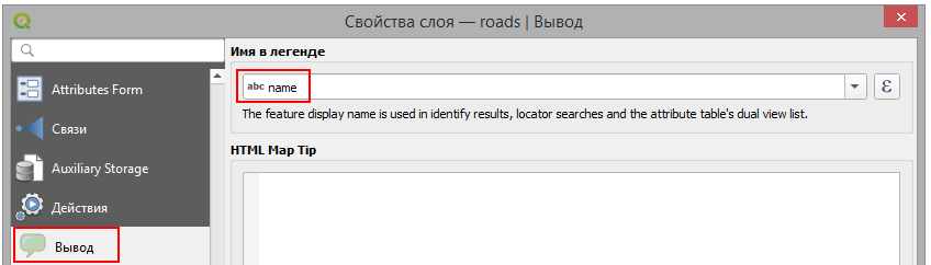 Затем нужно задать каждому слою поле, которое будет использоваться в качестве вывода для поиска (