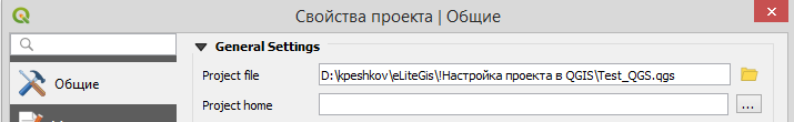 - Свойства QGS-проекта