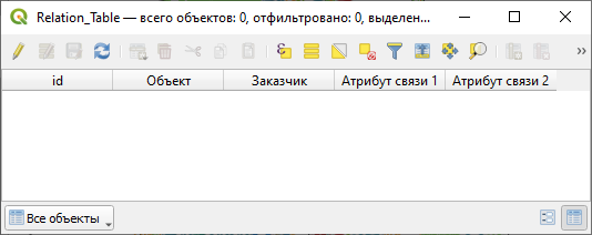 При создании связей между объектами в картографическом приложении промежуточная таблица автоматически заполнится значениями. Атрибуты связи можно заполнить, отдельно отредактировав промежуточную таблицу любыми способами (см.