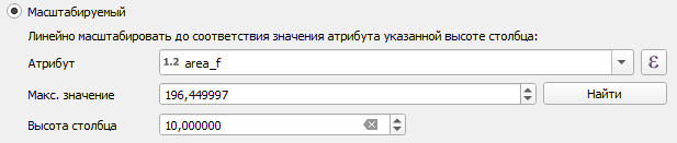 - Размер: настройка высоты гистограммы. Доступен только Масштабируемый размер. Для гистограмм зависимость от масштаба карты недоступна. Поле “Атрибут” необходимо только для автоматического вычисления максимального значения.