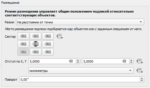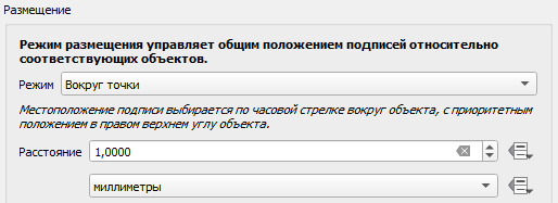 Рисунок 76 - Настройки размещения вокруг точки для подписей точечных объектов