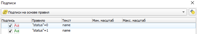 - Обычные подписи - единый стиль подписей значениями из выбранного поля, см. Рисунок 68 ;