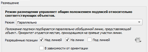 Рисунок 78 - Настройки размещения параллельно для подписей линейных оъектов