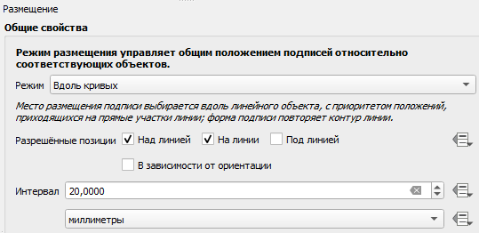 Рисунок 79 - Настройки размещения вдоль кривых для подписей линейных объектов