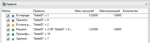 Рисунок 58 – Настройка правил отображения символов на разных масштабах