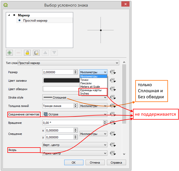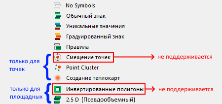На рисунке ниже представлены основные установки символики, которые поддерживаются при публикации картографического проекта в виде сервиса в