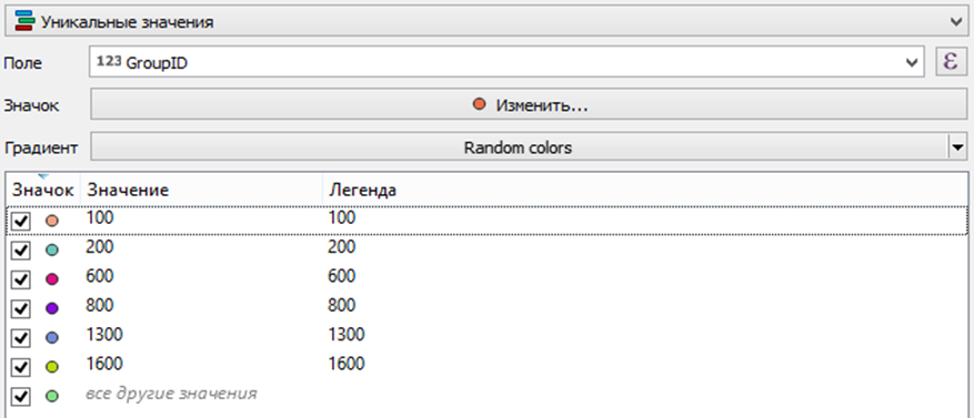 Установка символов в соответствии с уникальным значением выбранного поля данного объекта, см.