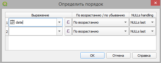 - позволяет задать сортировку объектов слоя по определенному полю или выражению, см.