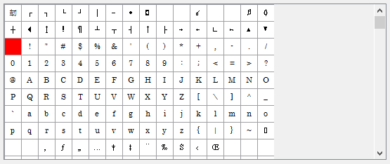 - Типы символов: заливка