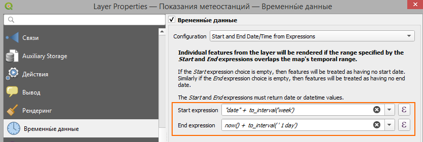 Рисунок 112 - Настройка границ временнóго интервала при помощи выражения