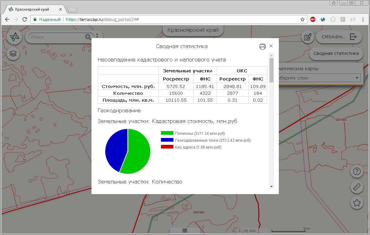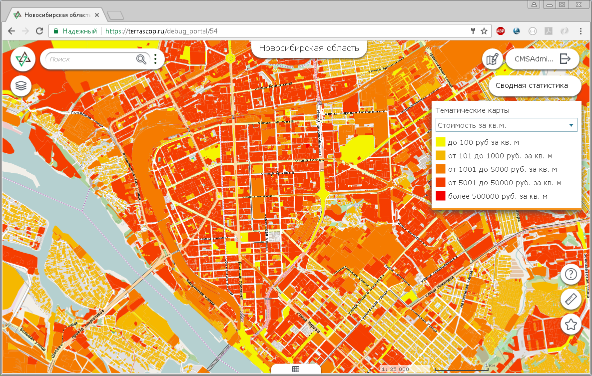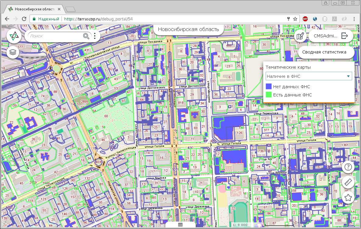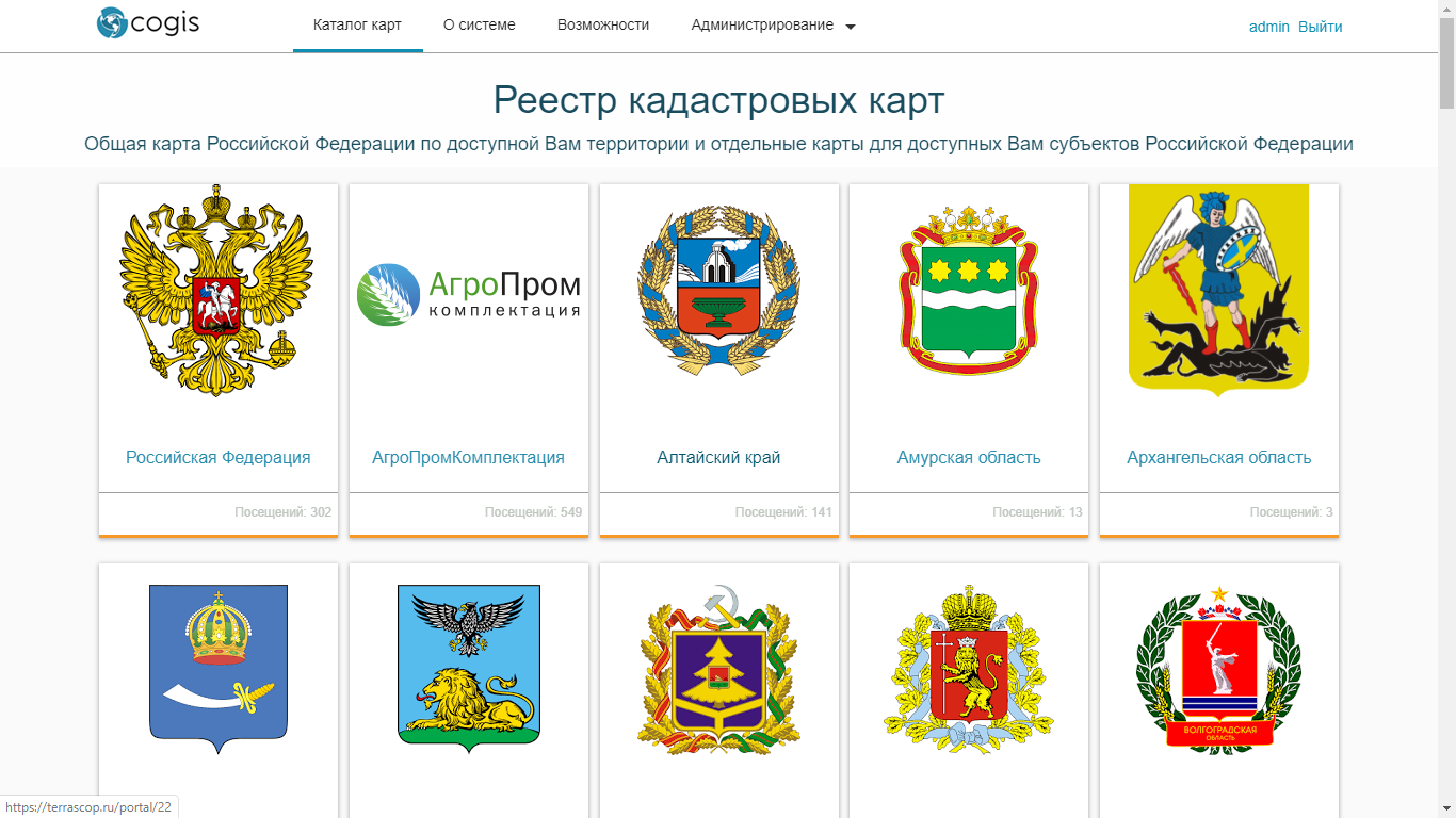 Портал «Терраскоп» - реализованный на базе CoGIS геоинформационный портал, обеспечивающий управление территорией и недвижимым имуществом.