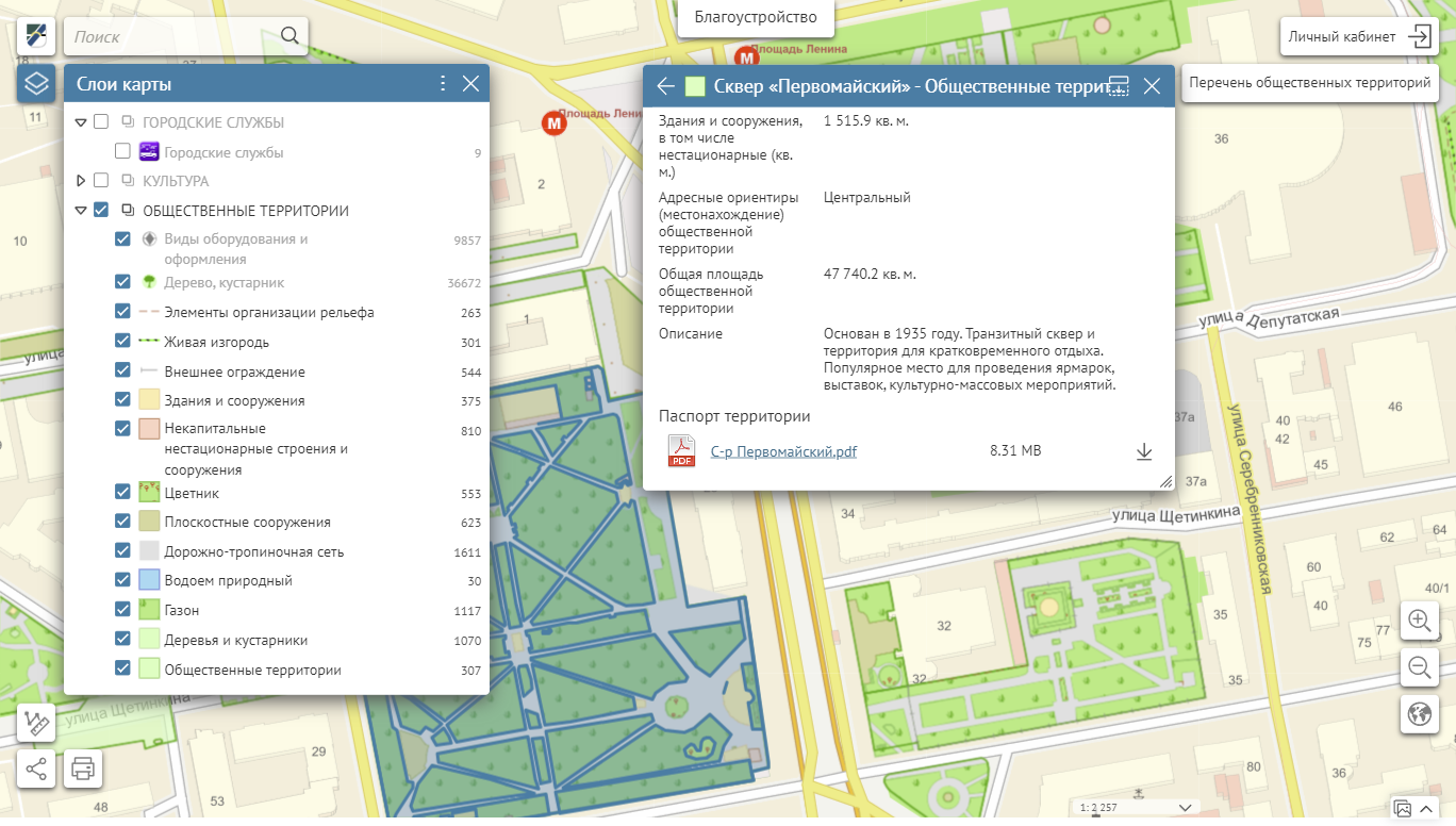 Рисунок 11 - Интерактивная карта «Общественных территорий Новосибирска»