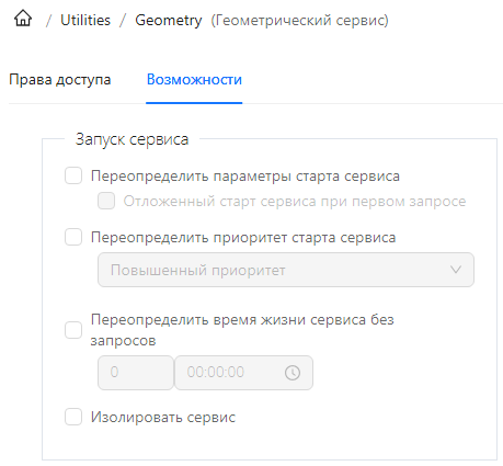 - Позволяет настроить отложенный старт сервиса при первом запуске (опция Отложенный старт сервиса при первом запросе ). Включение этой опции позволяет отложить запуск для второстепенных сервисов.