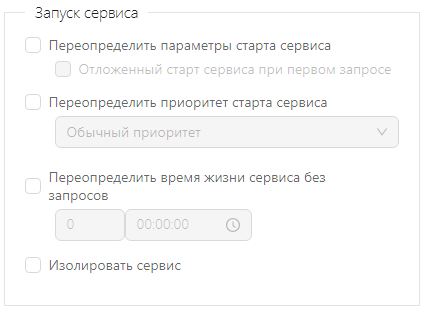 - Позволяет определить приоритет запуска сервиса: Пониженный/Обычный/Повышенный
