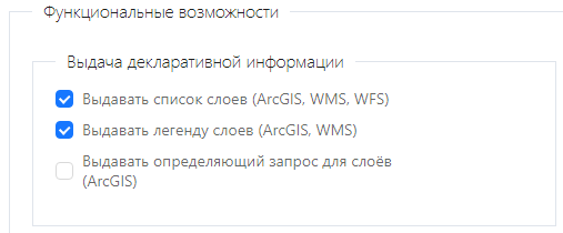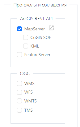 Дополнительно для опубликованного картографического сервиса можно включить поддержку протоколов и соглашений: