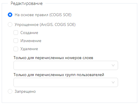 Группа позволяет выбрать один из трех вариантов редактирования для картографического сервиса (см.