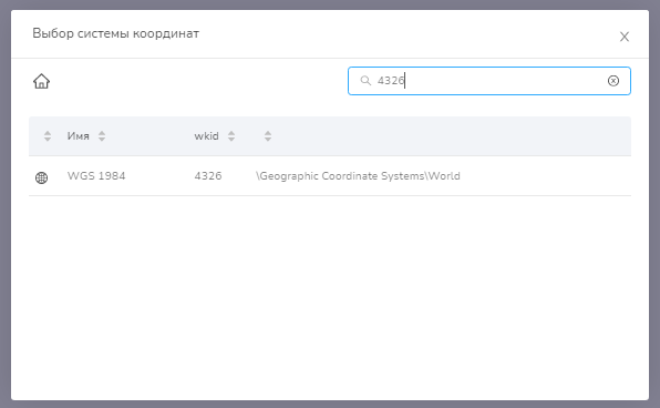 Далее в появившемся окне необходимо выбрать нужную систему координат, найти которую можно при помощи окна Поиск (см.