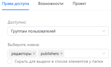 - Группам пользователей - сервис будет доступен только указанным группам пользователей;