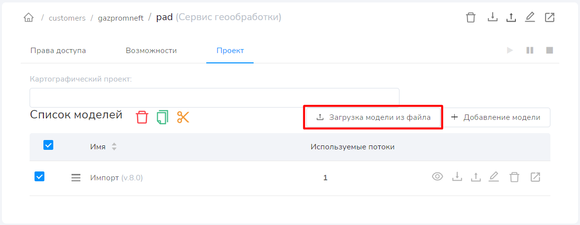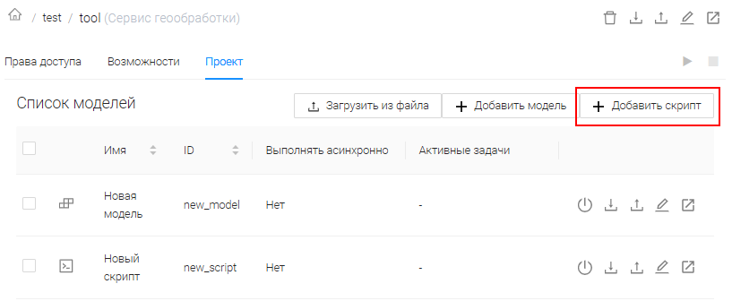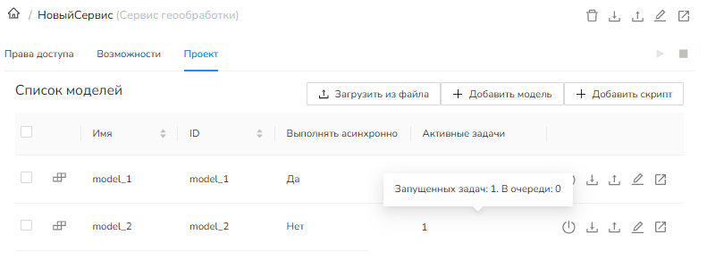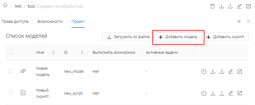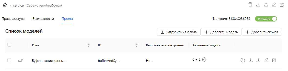 Для перехода к настройке моделей геообработки необходимо нажать на имя сервиса в списке. Будет открыто окно свойств сервиса. Далее необходимо перейти к разделу