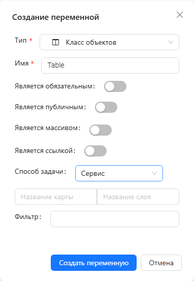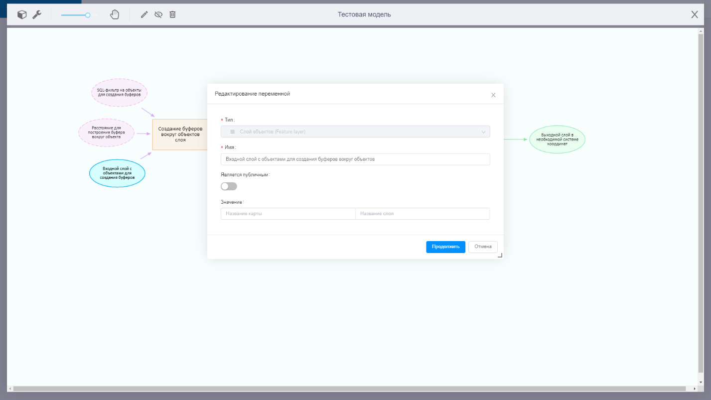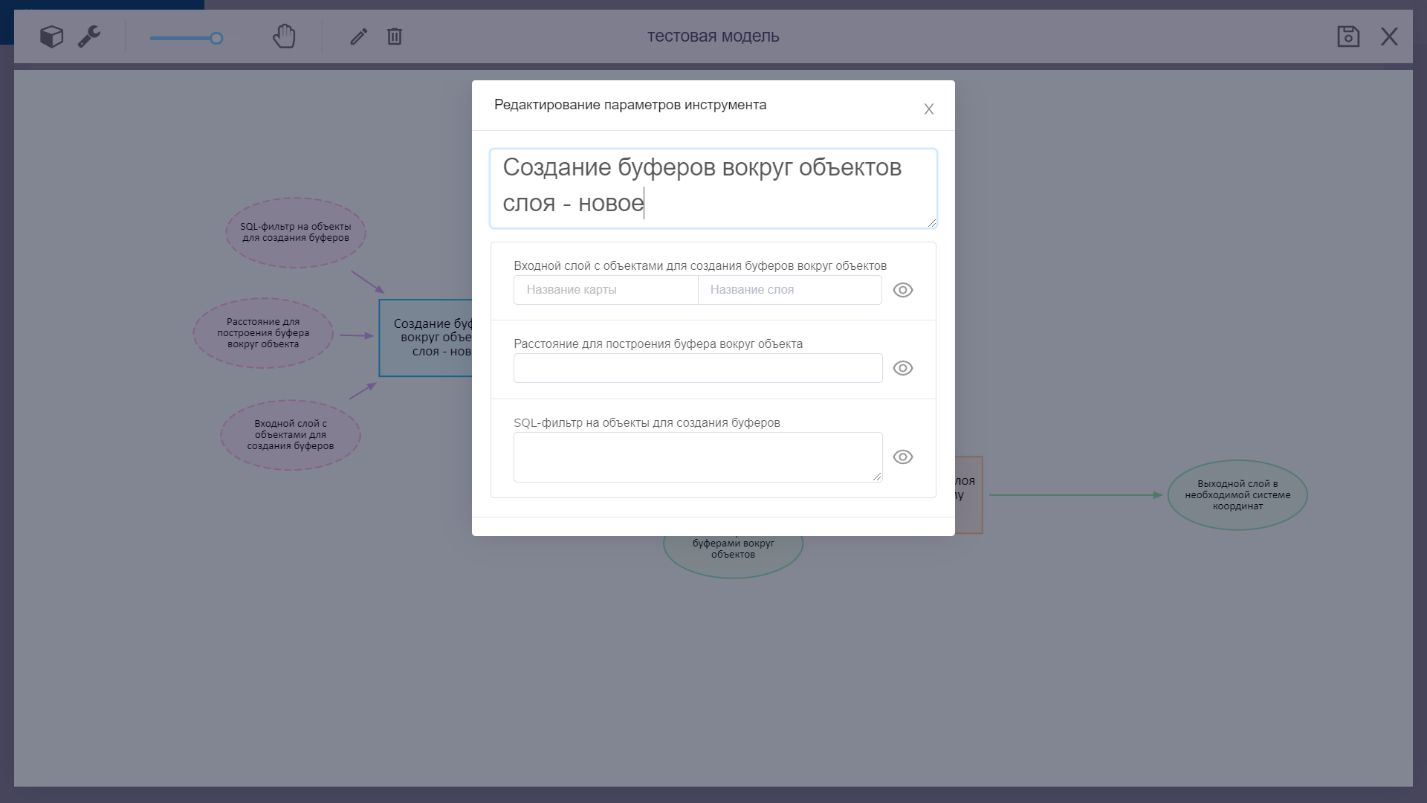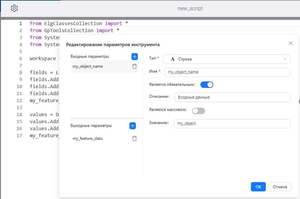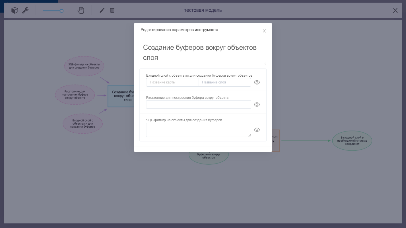 - Входные параметры - заданные входные параметры текущей задачи геообработки.