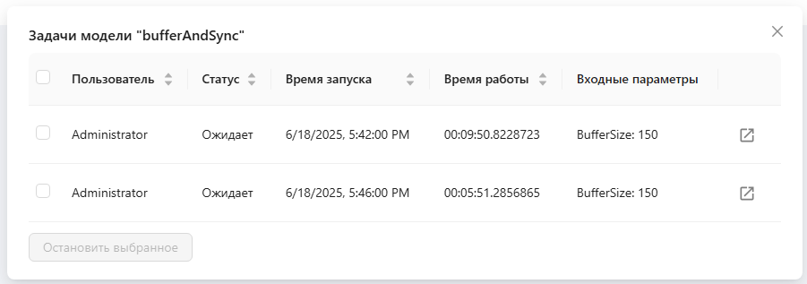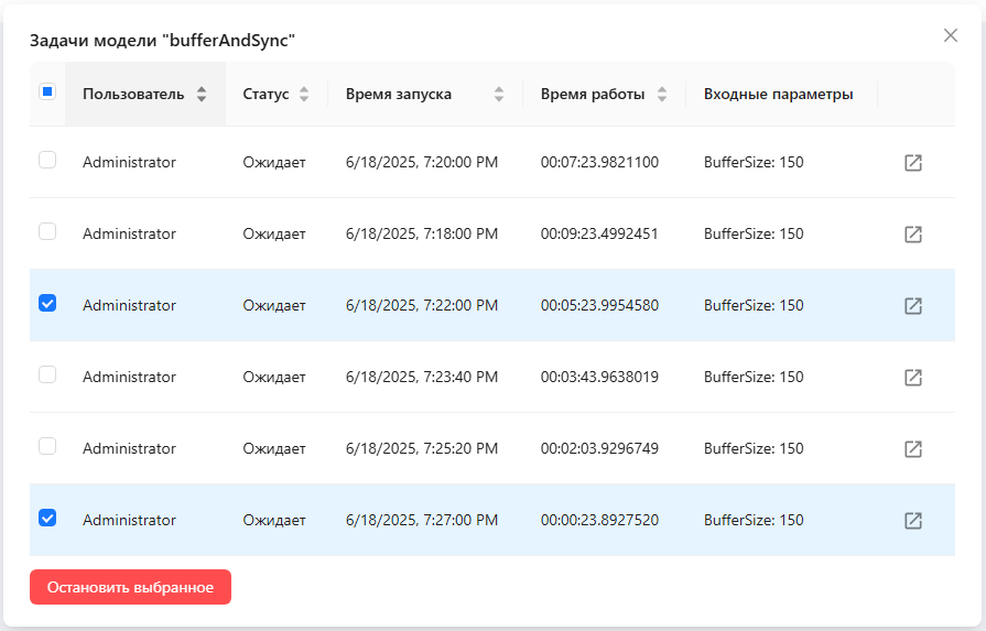 Одну или несколько выбранных активных задач из списка можно остановить. Для этого выберите необходимые задачи в списке, установив в первом столбце таблицы