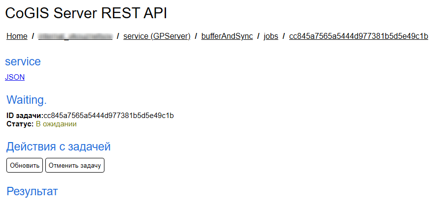 Для каждой активной задачи из списка можно перейти на ее страницу REST API по кнопке