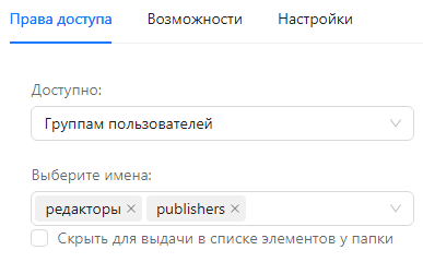 ). В таком случае сервис будет доступен для использования в Конструкторе и по REST API, но при этом не будет виден в выпадающих меню в Конструкторе или в описании REST API содержащей его папки. Обратите внимание, что действие этой опции касается всех пользователей.