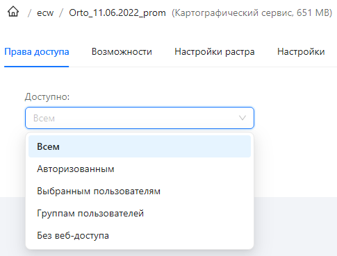 По умолчанию доступ к сервису разрешен для всех пользователей. Уровень доступа можно изменить, выбрав один вариант из списка: