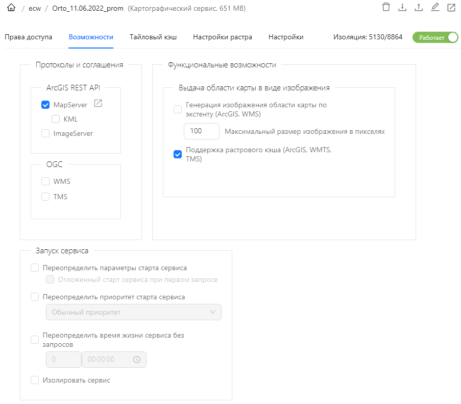 - Поддержка растрового кэша (ArcGIS REST API, WMTS, TMS) .