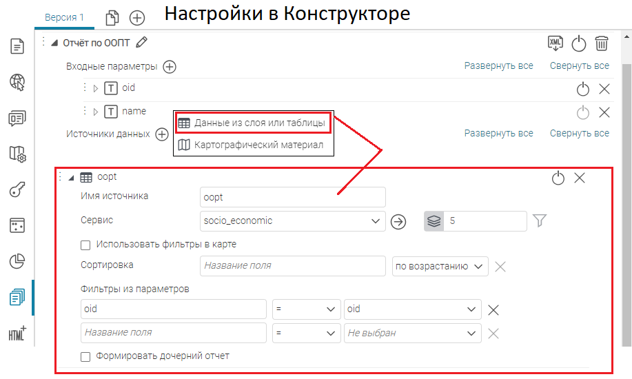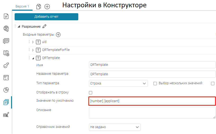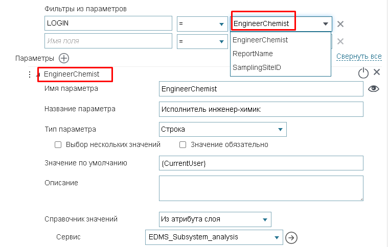 - это атрибутивное поле, значение которого будет являться входным параметром для построения отчета. Пример показан ниже, см.