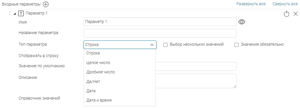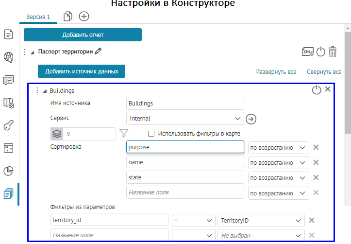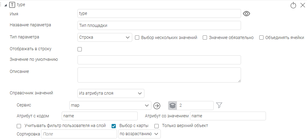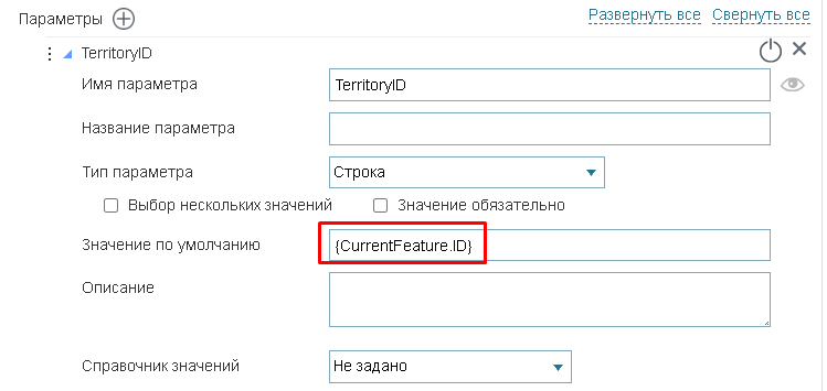 Например, необходимо построить отчет по определенной территории и расположенным на ней объектам. Тогда можно настроить запуск генерации отчета из карточки объекта территории. Для этого создайте параметр, например,