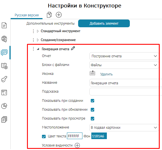 Для того, чтобы произвести настройку формирования отчета, необходимо: