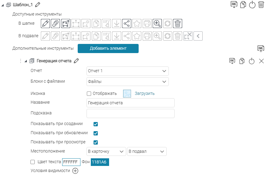 Запустить генерацию отчета можно из карточки объекта или в окне виджета. Если отчет формируется по одному объекту, то параметром для формирования отчета будет являться идентификатор этого объекта.