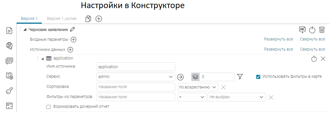 Если отчет строится по нескольким объектам, то его формирование будет вызываться из окна виджета. Перейдите на вертикальную вкладку