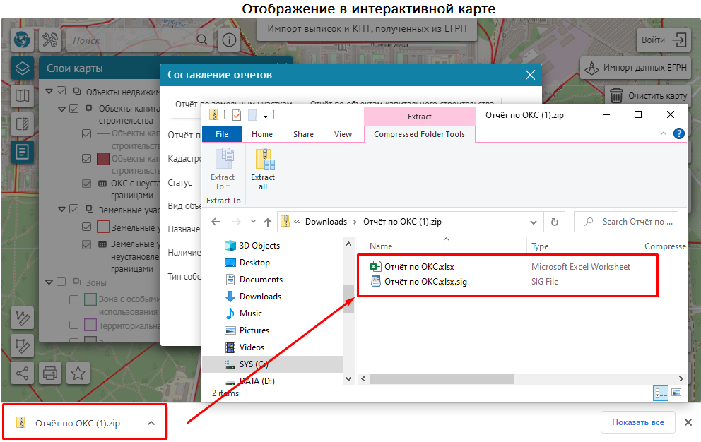 CoGIS поддерживает встроенную возможность формирования отчетов по данным картографических сервисов в форматах .xlsx и .docx.