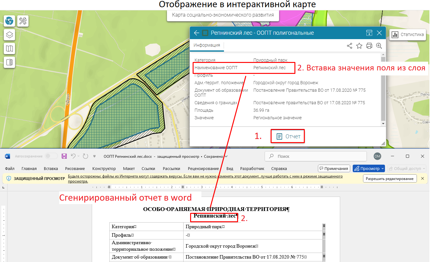 Постобработку отчета можно осуществить с помощью инструментов доступного картографическому приложению сервиса геообработки.