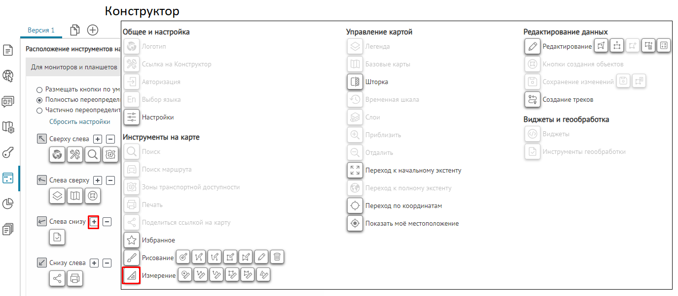 Для того, чтобы пользователь веб-карты мог создавать объекты с помощью инструмента замыкания, необходимо: