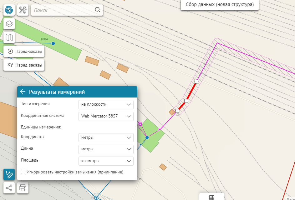 Если опции были оставлены по умолчанию и включено только редактирование слоя, в котором будет создаваться или изменяться геометрия объектов, то чтобы воспользоваться инструментом замыкания, пользователю веб-карты необходимо: