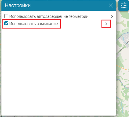 - В таком случае инструмент замыкания в окне Настройки в интерактивной карте будет включен по умолчанию. Отдельно пользователю активировать инструмент не понадобится.
