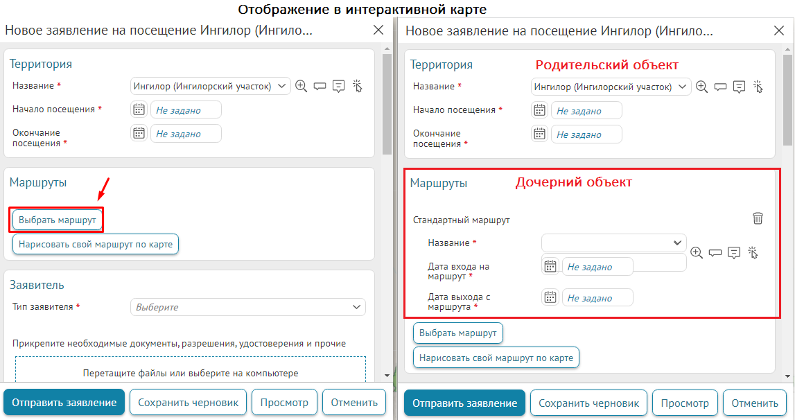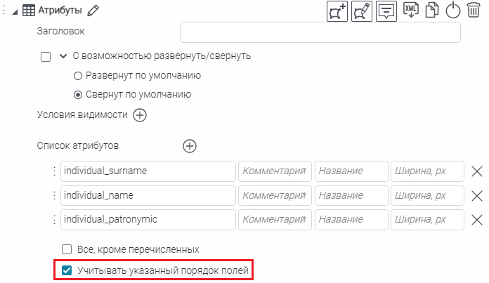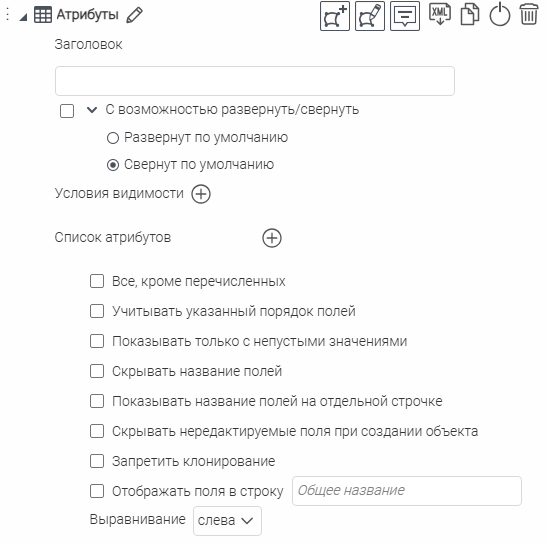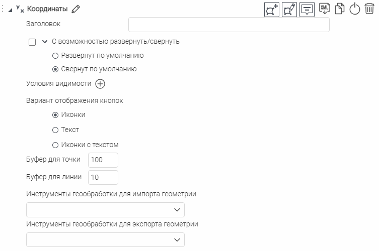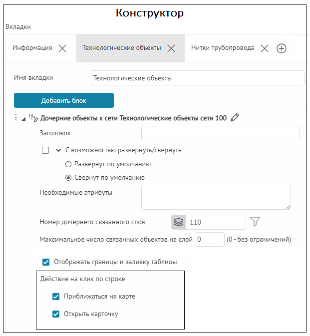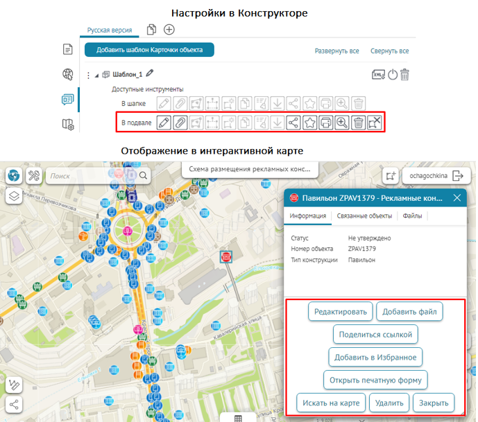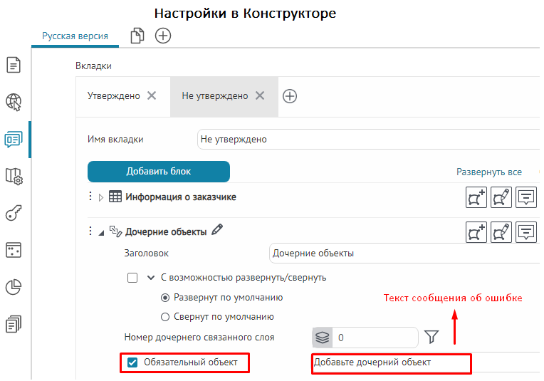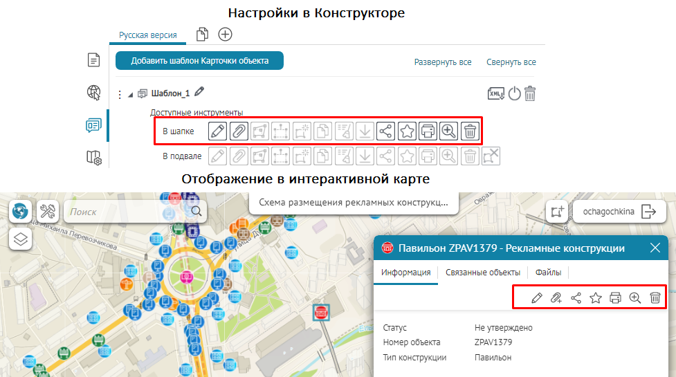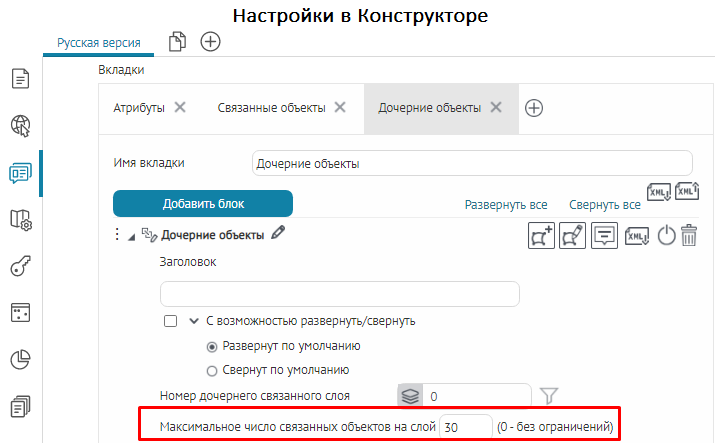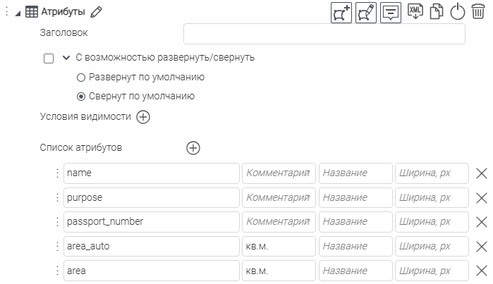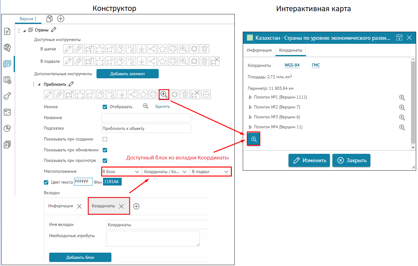 Что касается специальных кнопок создания или сохранения объектов или атрибутивных полей для редактирования, то слой, на значения атрибутивных полей которого будут назначены условия, указывается непосредственно при настройке.