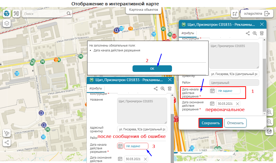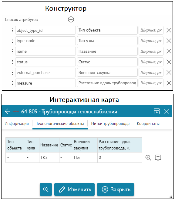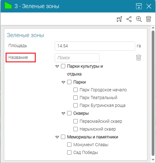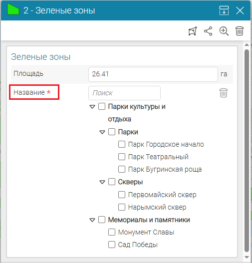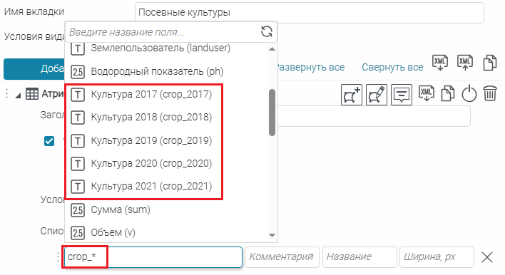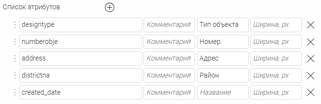 , где необходимо выбирать атрибутивное поле, будет отображаться выпадающий список с атрибутивными полями выбранного слоя объектов.