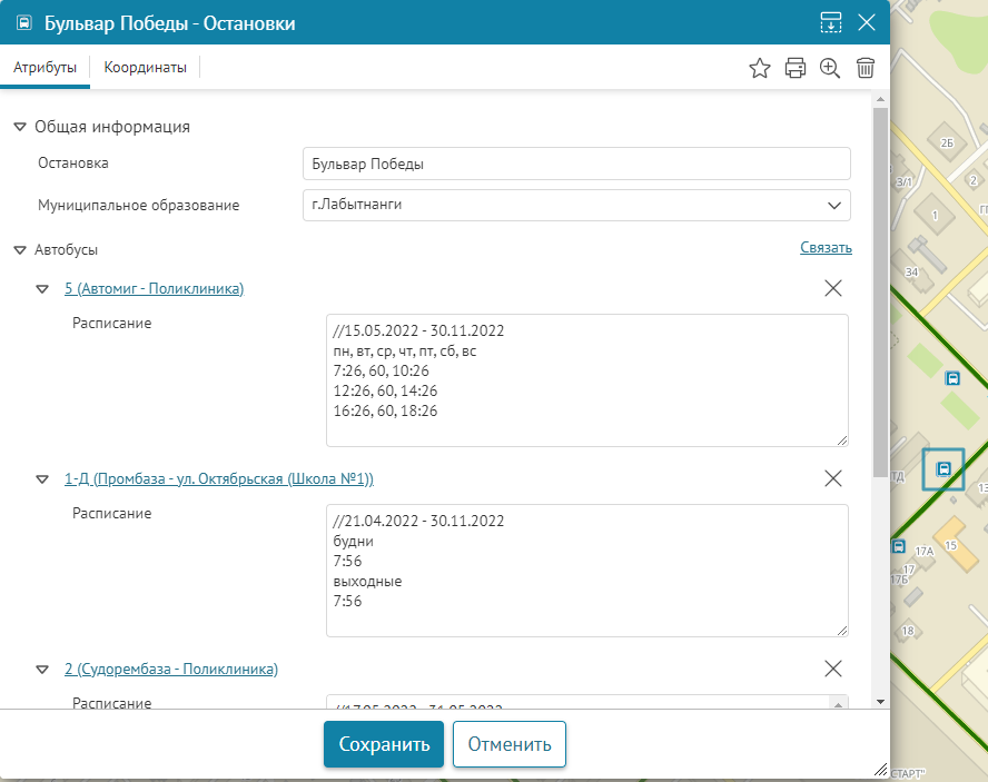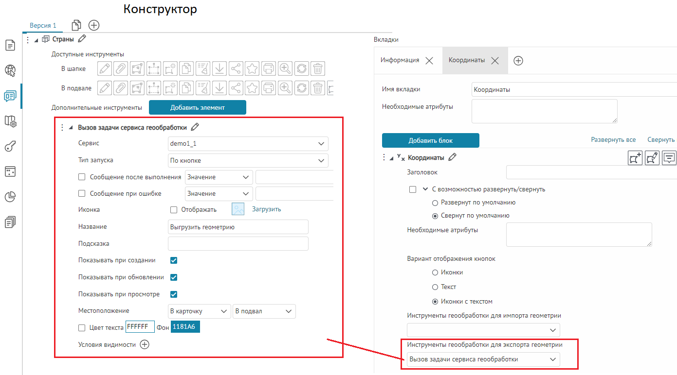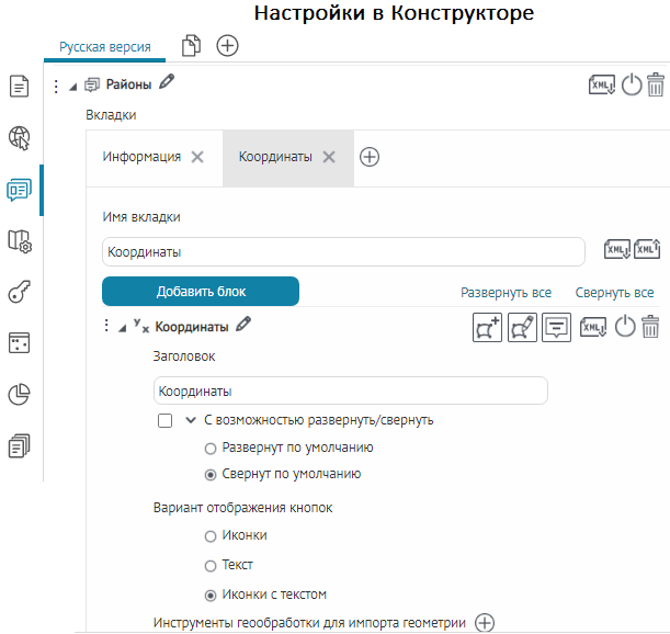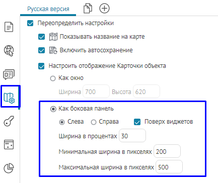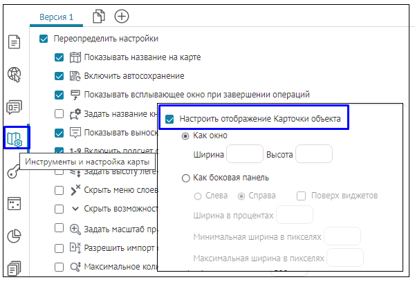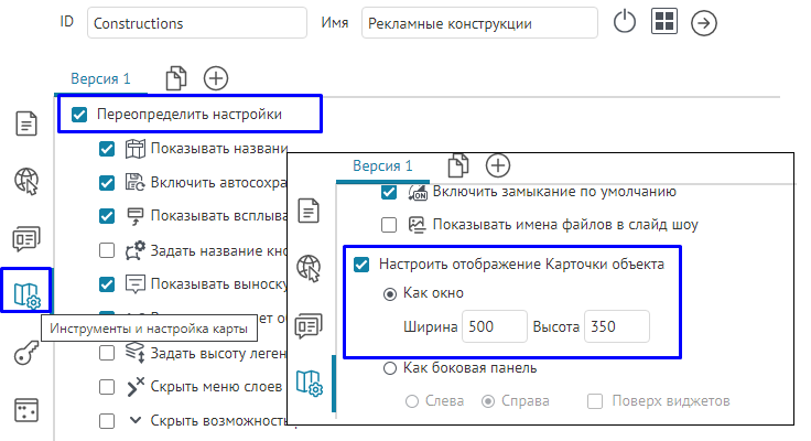 в том виде, как она хранится в слое картографического сервиса. Настройки вкладки