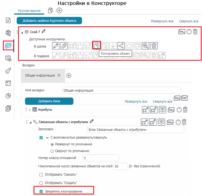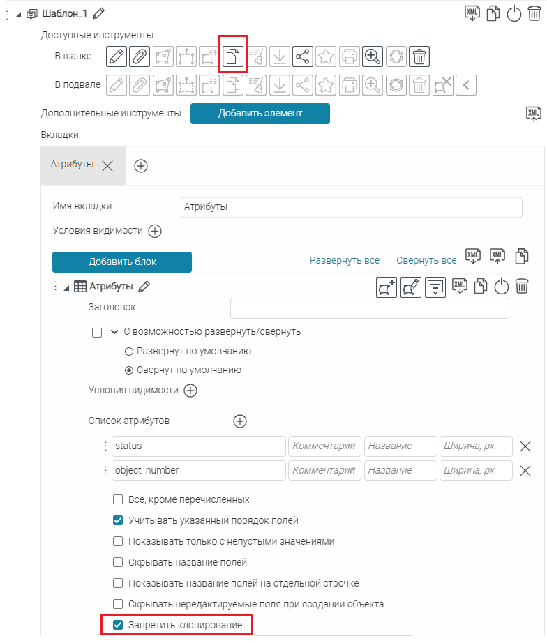 Использовать шаблоны для Карточки объекта