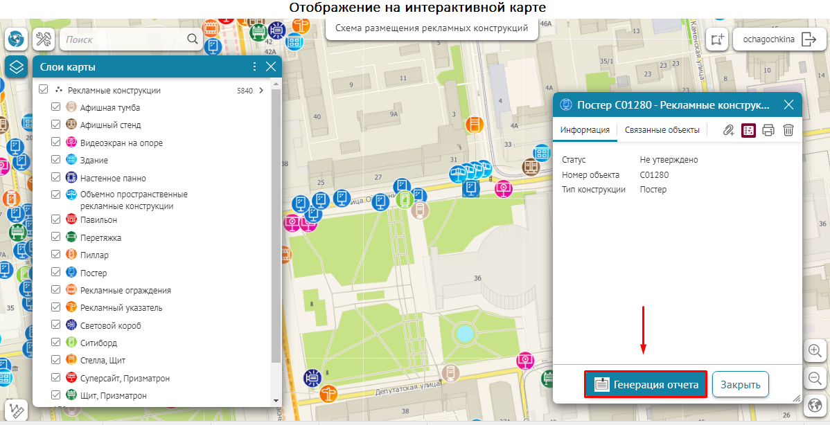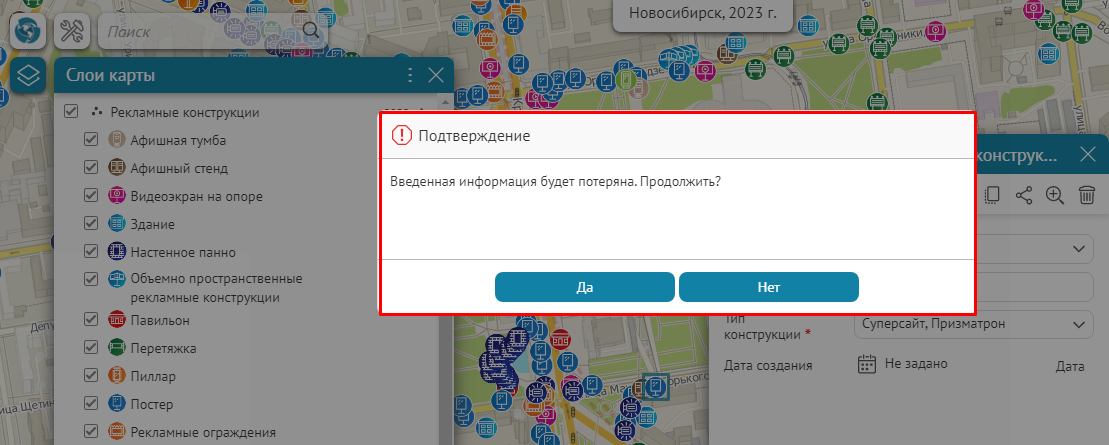 - Выключение слоя из картографического сервиса